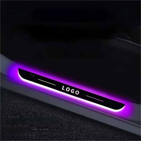 ไฟประตูคาร์บอนไฟเบอร์ LED พร้อมโลโก้เรืองแสง แผ่นกันรอยขอบประตูภายในรถยนต์ โลโก้เรืองแสงแบบเคลื่อนไหว
